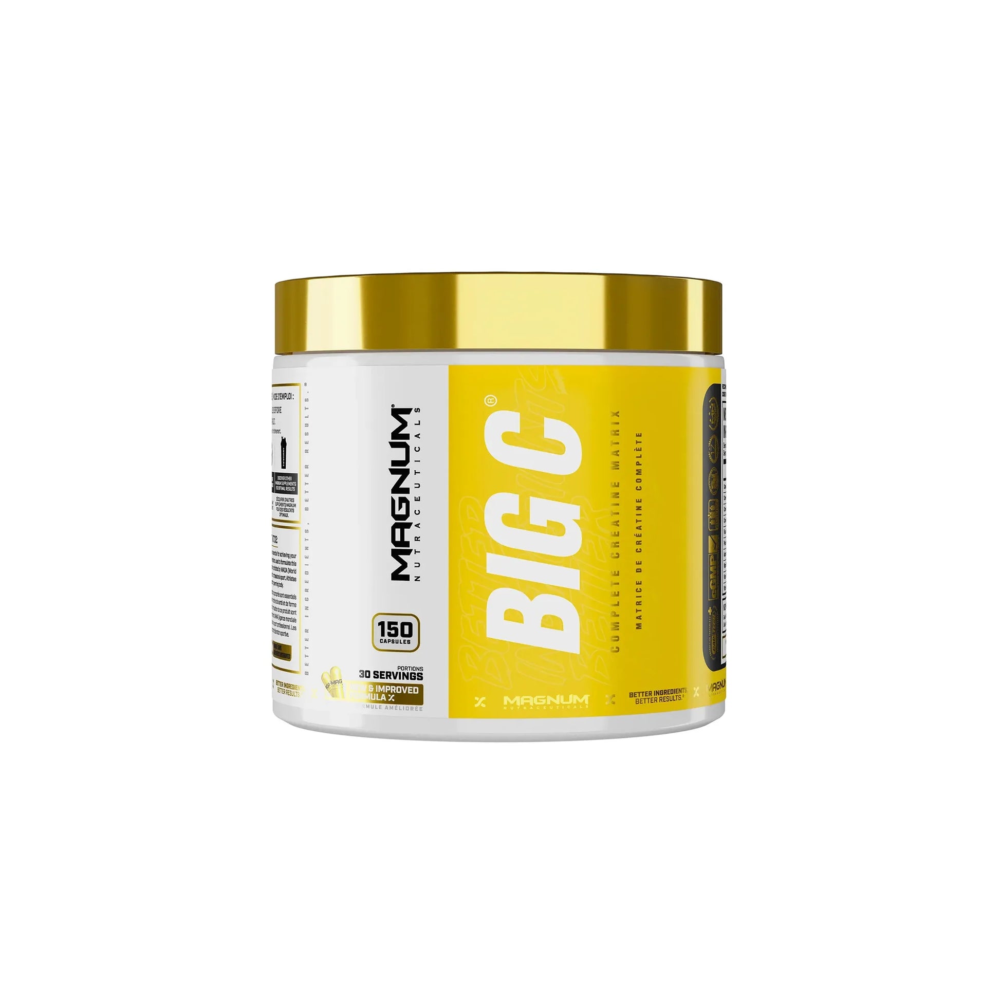 Magnum Big C est une matrice de créatine complète composée d'un mélange unique de quatre sources de créatine : Chélate de magnésium de créatine, HCl de créatine, monohydrate de créatine et AKG de créatine.
